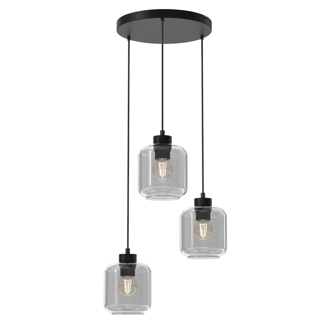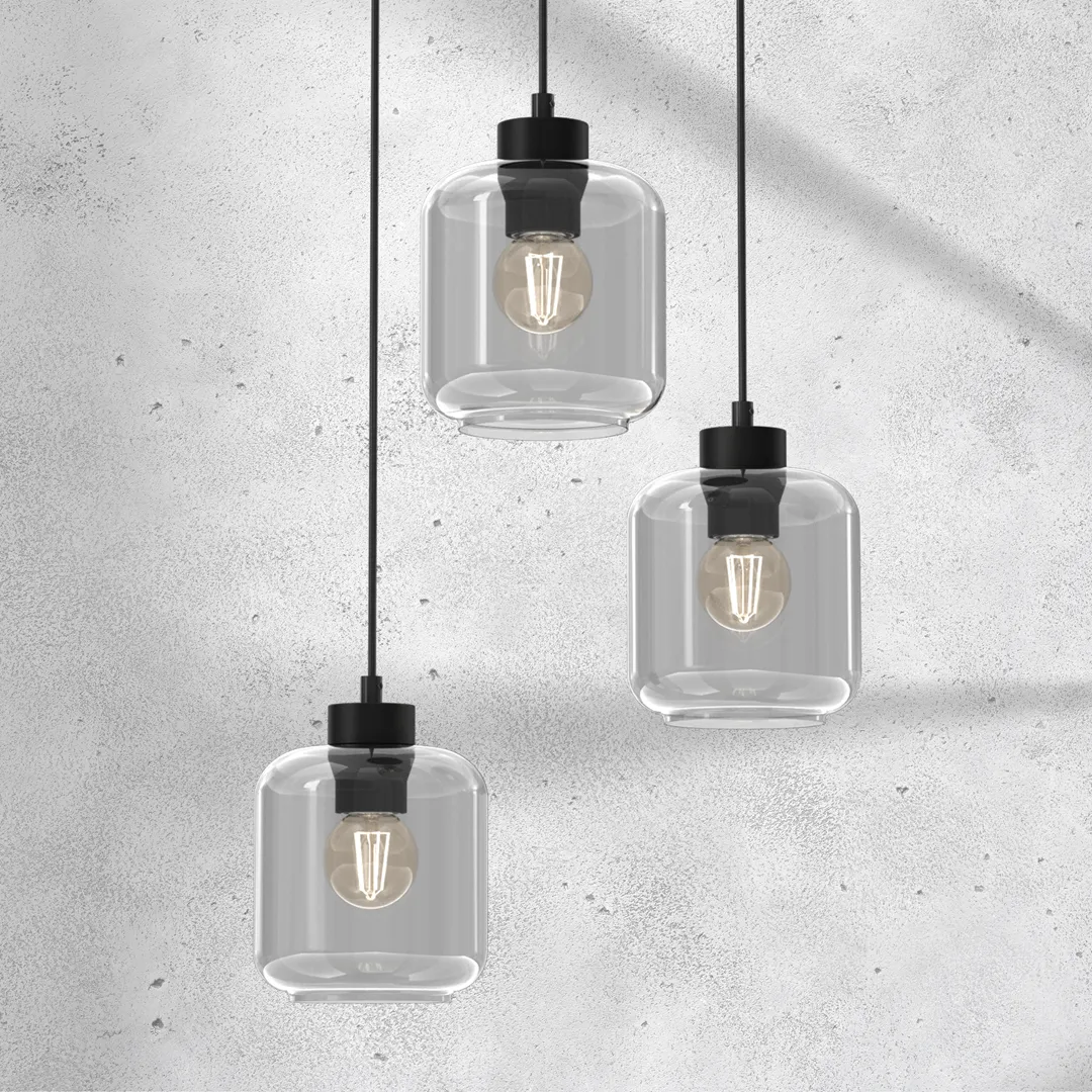 Zwisające klosze w dymionym wybarwieniu z czarnym wykończeniem to ciekawa alternatywa dla bardziej stonowanych i jednolitych propozycji oświetlenia do biura lub mieszkania. W ofercie dostępne są lampy z symetrycznym ustawieniem kloszy lub takie, które mają je ustawione nieregularnie - niektóre są dłuższe, inne krótsze. Czarne wykończenie sprawia, że lampy będą współgrały tak naprawdę z większością odcieni ścian. Wszystkie z dostępnych w ofercie lamp są bardzo łatwe w montażu i zainstalowaniu na suficie. Lampy z dymionymi kloszami i czarnymi wykończeniami to ponadczasowa klasyka w kategorii oświetlenia. Tego typu lampy sprawdzą się w jaśniejszych pomieszczeniach, z dostępem do światła dziennego. Ciemna kolorystyka lamp sprawia, że będą one lepiej współgrały z jasnymi odcieniami ścian. Klosze są w całości dymione i współpracują z żarówkami led E27 z dużym gwintem. Dzięki w pełni klasycznym proporcjom świetnie sprawdzą się w nieco wyższych pomieszczeniach. Lampa zapewnia równomierne rozchodzenie się światła i miłe dla oka doświetlenie całej powierzchni stołu, nad którym będzie prezentowała się najlepiej. Kombinacja przydymionego szkła i elementów metalowych w czarnym macie, pasuje do wielu przestrzeni mieszkalnych i biurowych.