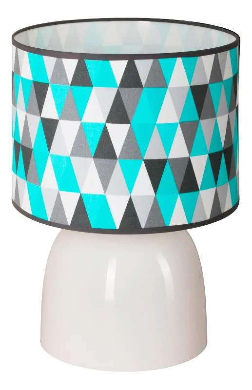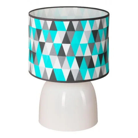 Fenomenalna lampka EX492-Eshin to idealna propozycja dla osób, które cenią sobie ekstrawagancki design w aranżacjach oświetleniowych. Okrągły abażur, który zachwyca  modnym, trójkątnym wzornictwem i mieszaniną kolorów ożywi każde wnętrze w jakim się znajdzie. Lampa doda indywidualnego charakteru, przyciągnie każdy wzrok oraz sprawi, że pomieszczenie nabierze nowego wymiaru. Emitowane z niej światło stworzy wyjątkową atmosferę sprzyjającą wypoczynkowi w sypialni, salonie czy też w pokoju dziecięcym. W szczególności polecamy ją do nowoczesnych, designerskich wnętrz. Produkt został wykonany z materiałów  najwyższej jakości, dzięki czemu będzie można cieszyć się jego wyglądem i funkcjonalnością przez wiele długich lat.