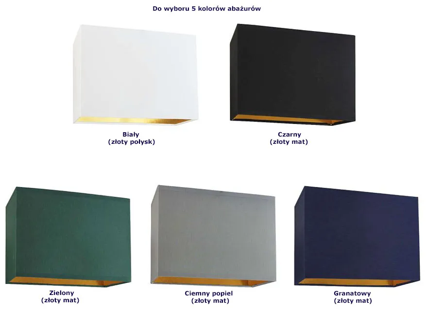 Lampa dostępna jest także w innych kolorach stelaża (biały, czarny, srebrny, chrom, stal szczotkowana, stare złoto). Jeśli jesteś zainteresowany innym kolorem kliknij tutaj.