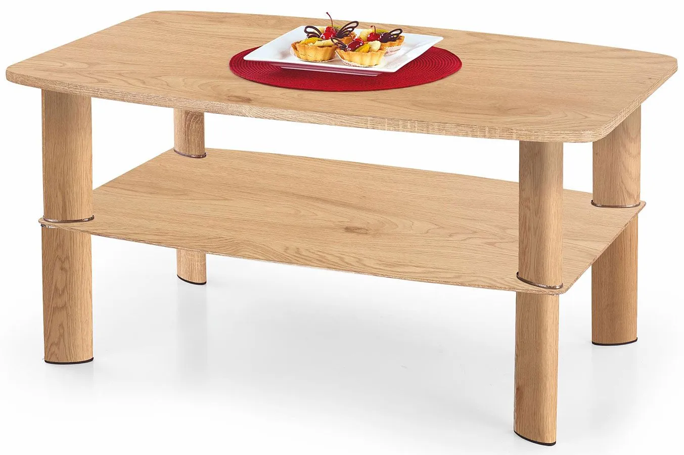 Komfortowa i praktyczna ława Kefo to wyjątkowe przedsięwzięcie młodych europejskich designerów. Wyróżnia się nie tylko swoją nieprzeciętną formą i eleganckim kształtem, ale także zastosowaniem materiałów najlepszej jakości. To dlatego cieszy się ona powodzeniem wśród osób lubiących nowatorskie rozwiązania. Użyta do produkcji stolika płyta laminowana została uszlachetniona cienkimi filmami melaminowymi. Posiada także specjalne włókna ułożone różnokierunkowo, co zapewnia nadanie jej cech jakościowych oraz wytrzymałościowych. Elementy łączące konstrukcję wykonane są z wysokiej jakości laminowanej stali, co gwarantuje jej niezwykły efekt wizualny, posiadając przy tym ponadprzeciętne cechy antykorozyjne. Duża półka na prasę czy przekąski pomaga Ci zaoszczędzić miejsce na blacie i ułatwia utrzymanie na  nim porządku. Ława Kefo dodaje każdemu wnętrzu uroku i harmonii, a każda kawa przy niej wypita smakuje wyjątkowo smacznie. Podaruj Twoim czterem kątom nieco prawdziwego ciepła, harmonizując je ze szlachetnością naturalnych kolorów.