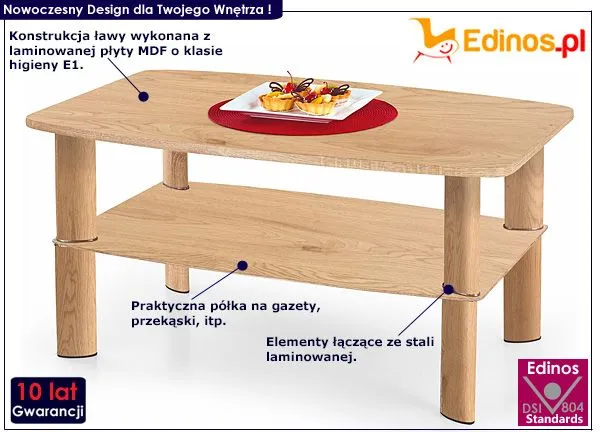 - Modny kolor: Dąb Złoty. Kliknij w link i sprawdź także inne stoliki prostokątne w sklepie Edinos.pl. Stwórz swój praktyczny zestaw mebli.
