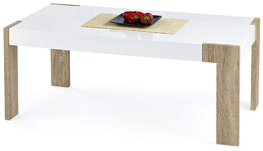 Komfortowa i wykwintna ława Furioksi wyróżnia się nie tylko swoją praktyczną formą i eleganckim kształtem, ale także zastosowaniem materiałów najlepszej jakości. To dlatego cieszy się ona powodzeniem wśród osób lubiących nowatorskie rozwiązania. Użyta do produkcji nóg mebla płyta laminowana w kolorze dąb sonoma została uszlachetniona cienkimi filmami melaminowymi. Posiada także specjalne włókna ułożone różnokierunkowo, co zapewnia nadanie jej cech jakościowych oraz wytrzymałościowych. Designerski prostokątny blat wyprodukowany został z lakierowanej płyty MDF w kolorze biały połysk. Ława Furioksi dodaje wnętrzu harmonii i elegancji, a każda kawa przy niej wypita smakuje doskonale. Podaruj Twoim czterem kątom nieco naturalnego ciepła, harmonizując je z czystością kolorów ziemi.