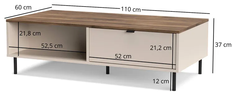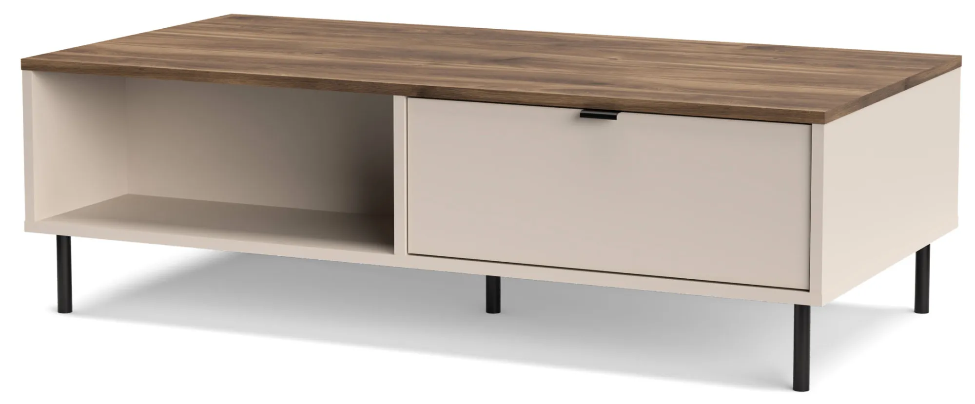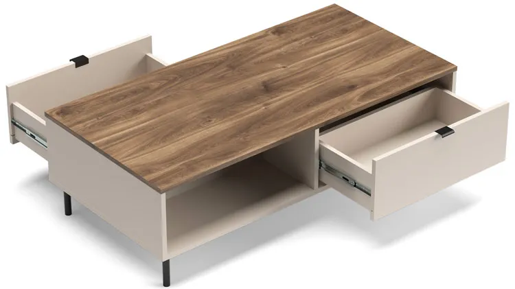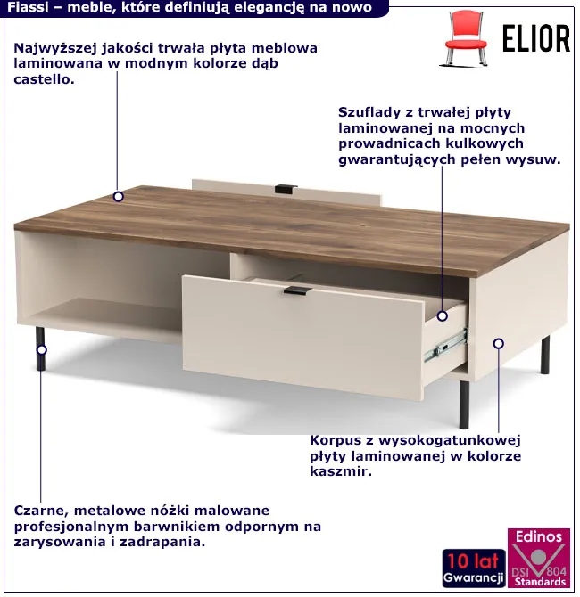 Ława kawowoa na nóżkach z szufladami Milox 6X kaszmir + dąb castello
