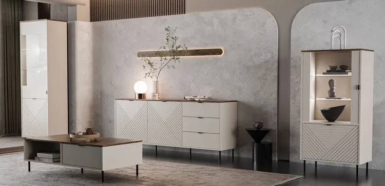 Kolekcja ryflowanych mebli kaszmir + dąb castello Fiassi