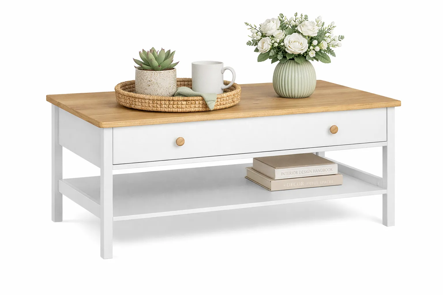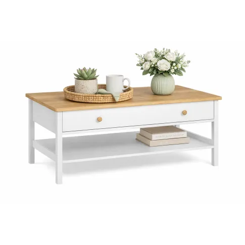 Ława kawowa z szufladą i półką biały + dąb nash - SO-15