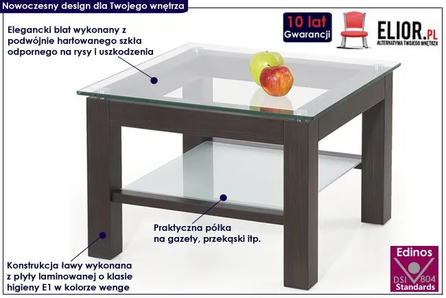 ława kwadrat Karo wenge szklana