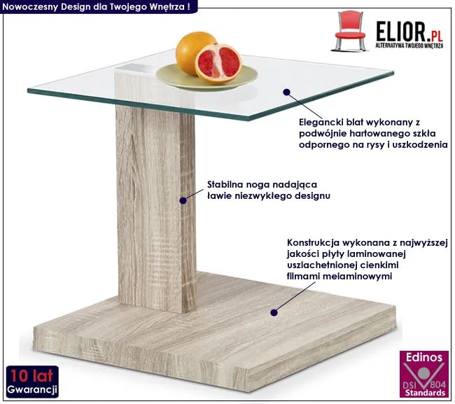 ława kwadrat szklana Monroi dąb sonoma