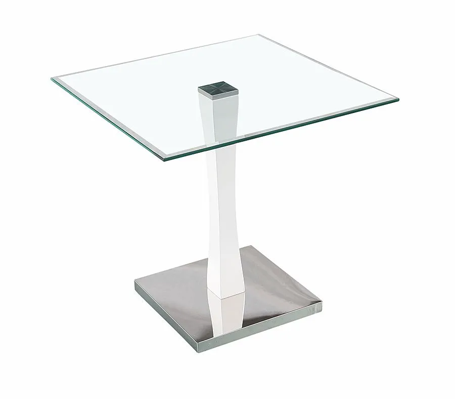 - Materiał: Wysokiej jakości lakierowana płyta MDF oraz stal nierdzewna. Blat wykonany został ze specjalnie hartowanego szkła (dokładnie szlifowanego i polerowanego na obrzeżach).
