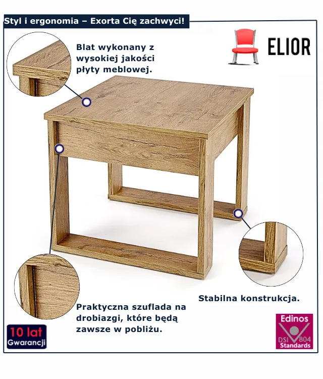 Dotyczy: Ława kwadratowa z szufladą dąb sonoma - Vermos