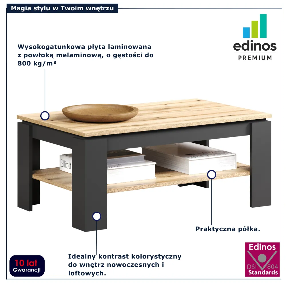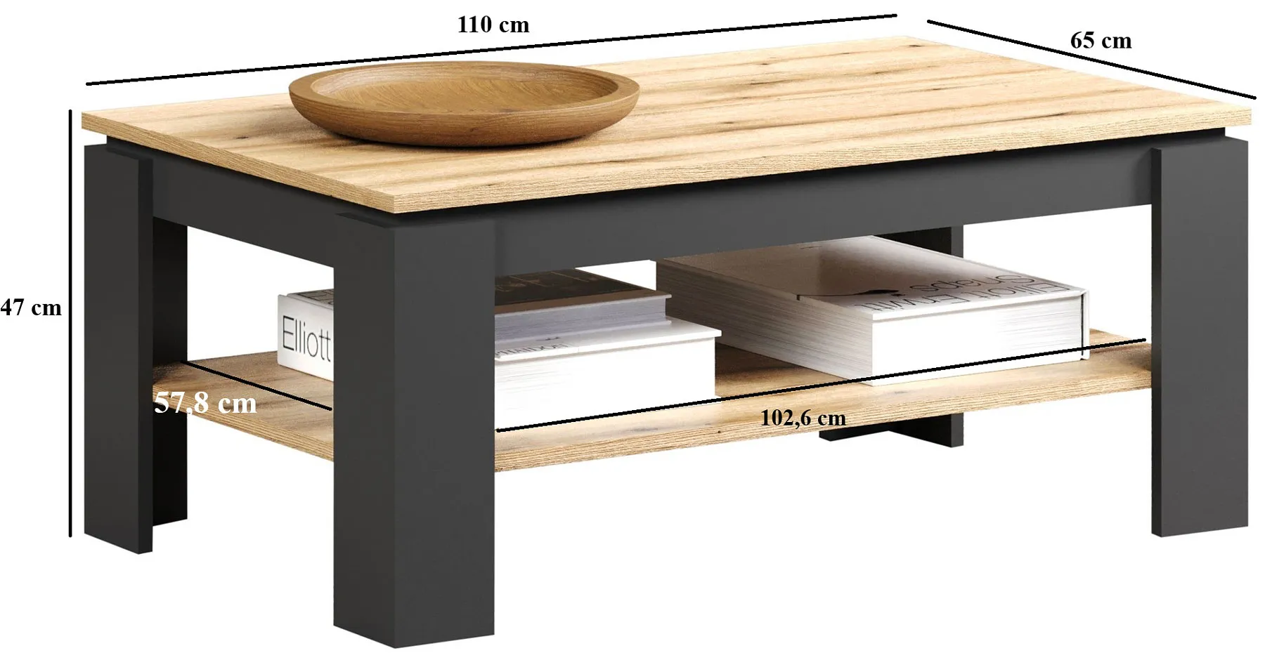 Ława kawowa nowoczesna z półką Assoni 6X grafit + dąb evok