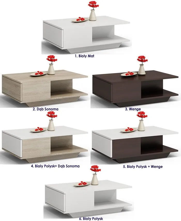 W ofercie posiadamy także stoliki Noka w kolorach biały połysk, biały mat, dąb sonoma, wenge oraz biały połysk + wenge. Jeżeli jesteś zainteresowany innym kolorem, zapraszamy tutaj.