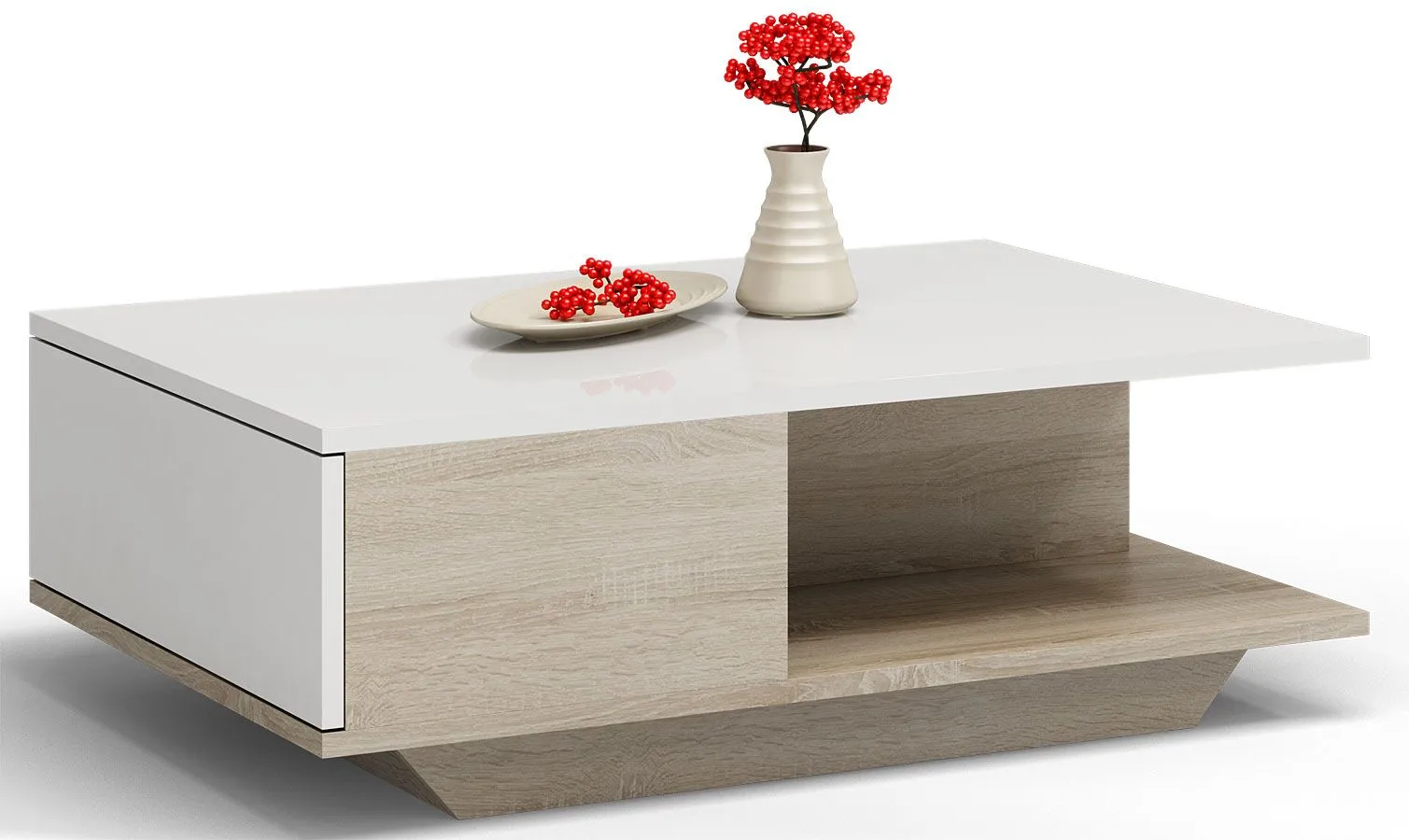 - Kolor: Blat oraz drzwiczki schowka w kolorze biały połysk, korpus mebla - dąb sonoma. W ofercie posiadamy także ławy Noka w kolorach biały połysk, biały mat, dąb sonoma, wenge oraz biały połysk + wenge. Jeżeli jesteś zainteresowany innym kolorem, zapraszamy tutaj.