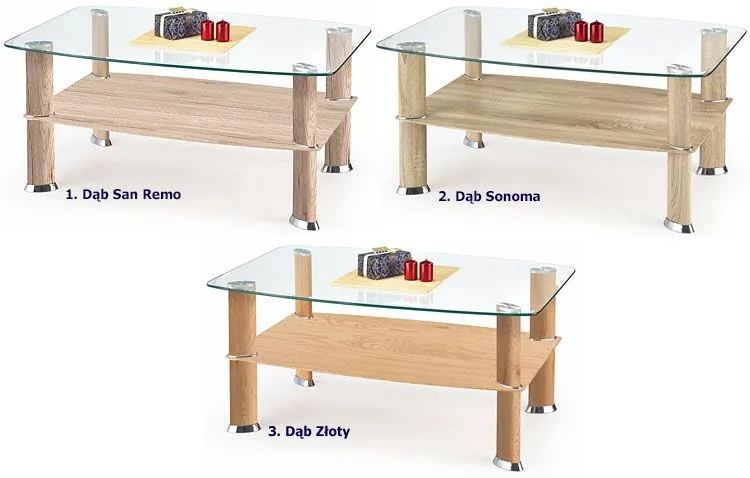 Szklany stolik kawowy do salonu dąb złoty Naxin