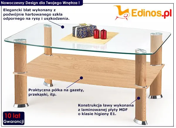 Urządzasz swoje wnętrze i pragniesz mieć miejsce na poczęstunek dla gości lub poczytanie książki przy filiżance kawy? Cenisz profesjonalne i praktyczne rozwiązania, które dodają Twojemu wnętrzu elegancji i klasy? W takim przypadku z przyjemnością przedstawiamy Ci ławę Naxin marki Edinos. Produkty Edinos charakteryzują się wyrazistym designem i dbałością o każdy szczegół mebla, a elegancja i nowoczesność, jak również mocna i stabilna konstrukcja, to cechy najnowszej ławy Naxin. Urzeknie Cię ona od pierwszego wejrzenia.