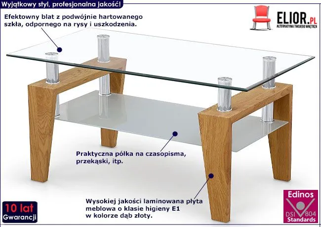 - Kolor: Dąb Złoty. Kliknij w link i sprawdź także inne prostokątne stoliki w sklepie Edinos.pl. Stwórz swój praktyczny zestaw mebli.
