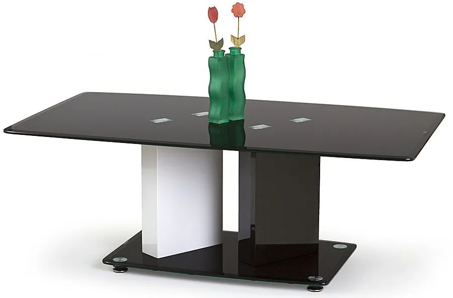 Wykwintna ława Rones wyróżnia się nie tylko swoją praktyczną formą i eleganckim kształtem, ale także zastosowaniem materiałów najlepszej jakości. To dlatego cieszy się ona powodzeniem wśród osób lubiących nowatorskie rozwiązania i szybko zyskała status bestsellera. Użyta do produkcji mebla płyta lakierowana w kolorze biały i czarny połysk została uszlachetniona cienkimi filmami melaminowymi. Dzięki uzyskaniu klasy jakości E1 płyta jest całkowicie odporna na wysokie temperatury (np. gorące naczynia). Czarny, nieprzezroczysty blat o prostokątnym kształcie wykonany jest z podwójnie hartowanego szkła o grubości 9 mm, dzięki czemu jest on niepodatny na rysy i uszkodzenia oraz łatwy w czyszczeniu. Ława Rones dodaje Twojemu wnętrzu harmonii i elegancji, a każda kawa przy niej wypita smakuje nadzwyczaj smacznie. Nie trać pieniędzy na chińskie, wątpliwej jakości meble. Zainwestuj w wygodę i dobry smak.