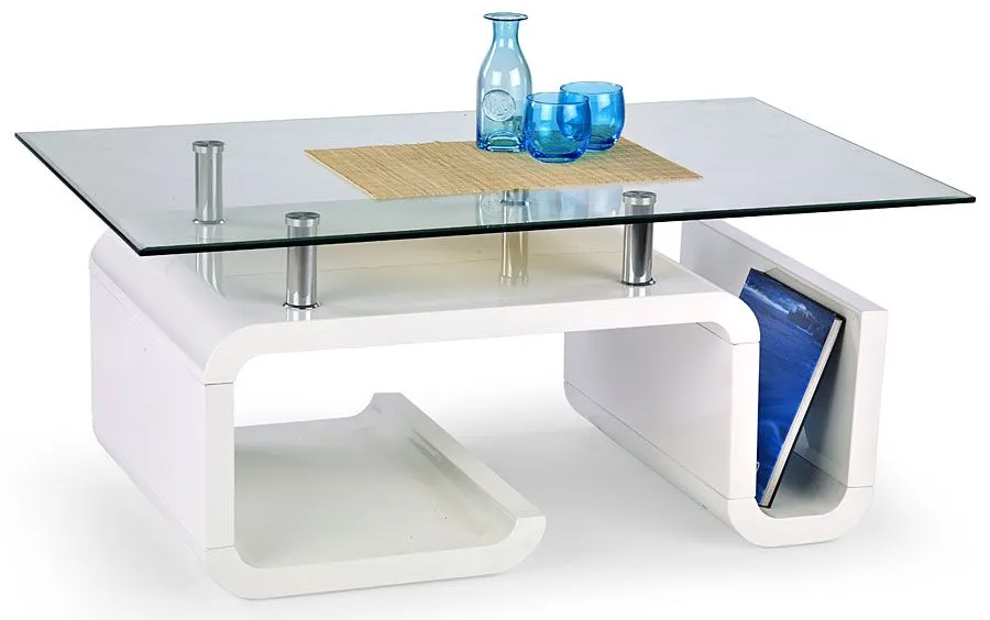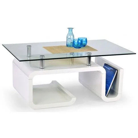 Efektowny i komfortowy stolik kawowy Quinx wyróżnia się nie tylko swoją praktyczną formą i eleganckim kształtem, ale także zastosowaniem materiałów najlepszej jakości. To dlatego cieszy się on powodzeniem wśród osób lubiących nowatorskie rozwiązania i szybko zyskał status bestsellera. Praktyczna w formie konstrukcja ławy wykonana została z wysokiej jakości lakierowanej płyty MDF, uszlachetnionej i pokrytej cienkimi filmami melaminowymi. Posiada także specjalne włókna ułożone różnokierunkowo, co zapewnia jej nadanie cech jakościowych oraz wytrzymałościowych. Designerski blat o prostokątnym kształcie zrobiono z podwójnie hartowanego szkła, dzięki czemu jest całkowicie odporny na rysy i uszkodzenia, a także łatwy w czyszczeniu. Duża półka oraz gazetownik na niezbędne dokumenty czy inne drobiazgi są niezwykle praktyczne i pomagają Ci zaoszczędzić miejsce na stole, a także utrzymać na nim porządek. Ława Quinx w kolorze biały połysk dodaje Twemu wnętrzu nowoczesności i elegancji. Nie trać pieniędzy na chińskie, wątpliwej jakości meble. Zainwestuj w wygodę i dobry smak.
