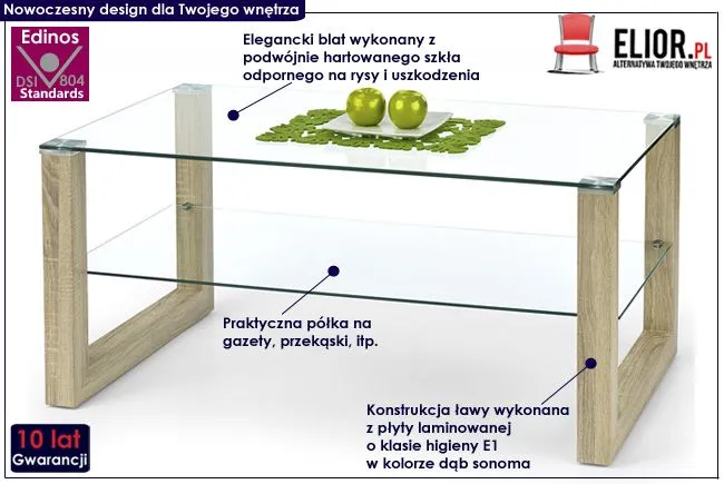 ława szklana prostokątna do salonu Silja dąb sonoma