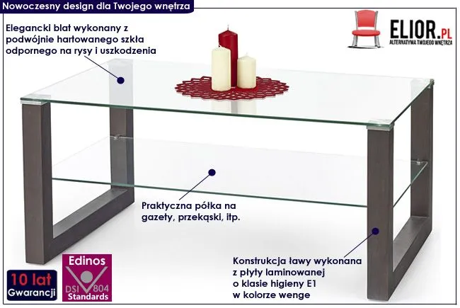 ława szklana do salonu pokoju stolik kawowy Silja