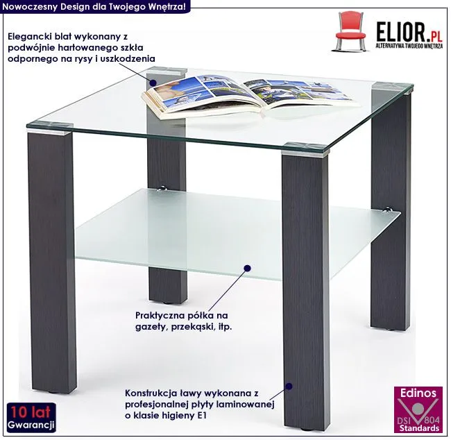 W Twoim wnętrzu brakuje miejsca na spokojne przejrzenie prasy z kubkiem gorącej herbaty? Pomyśl o zakupie eleganckiej i komfortowej ławy! Z przyjemnością przedstawiamy Ci najnowszy stolik kawowy Teris marki Elior. Produkty Elior charakteryzują się wyrazistym designem i dbałością o każdy detal mebla, a wdzięk i nowoczesność, jak również mocna i stabilna konstrukcja, to cechy najnowszej ławy Teris. Jej wyjątkowy styl zachwyci Cię od pierwszego wejrzenia.