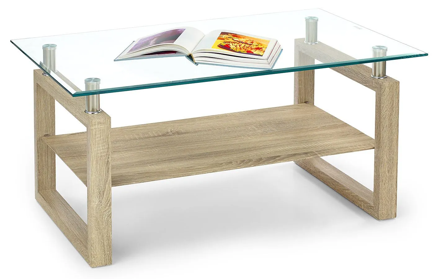 Komfortowa i czarująca ława Diki wyróżnia się nie tylko swoją praktyczną formą i eleganckim kształtem, ale także zastosowaniem materiałów najlepszej jakości. To dlatego cieszy się ona powodzeniem wśród osób lubiących ponadprzeciętne rozwiązania. Wygodna w formie konstrukcja ławy wykonana została z wysokiej jakości płyty laminowanej w kolorze dąb sonoma, uszlachetnionej cienkimi filmami melaminowymi. Posiada także specjalne włókna ułożone różnokierunkowo, co zapewnia nadanie jej cech jakościowych oraz wytrzymałościowych. Prostokątny blat wyprodukowano z podwójnie hartowanego szkła, dzięki czemu jest on całkowicie odporny na rysy i uszkodzenia. Praktyczna półka na niezbędne drobiazgi pomaga Ci zaoszczędzić miejsce na blacie i utrzymać na nim porządek. Ława Diki dodaje wnętrzu harmonii i uroku, a każda kawa przy niej wypita smakuje doskonale. Podaruj Twoim czterem kątom nieco naturalnego ciepła, harmonizując je z czystością delikatnych kolorów.