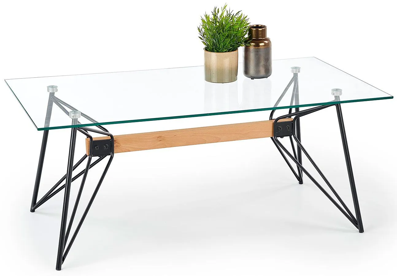 Prostokątna ława szklana Lavir 2X wyróżnia się stabilną i trwałą konstrukcją, choć jest zarazem lekka i delikatna. Połączenie szklanego bezbarwnego blatu, szlachetnej barwy naturalnego drewna i czarnej konstrukcji o nowoczesnym kształcie prezentuje się niezwykle ciekawie, choć przy tym klasycznie i bez wątpienia elegancko. Jednak nie tylko wygląd jest wielką zaletą ławy Westa - optymalny wymiar blatu 110x60 cm pozwala Ci delektować się smakiem ulubionej kawy czy kieliszkiem wina nie tylko samotnie, ale również w towarzystwie kilkorga przyjaciół czy domowników.