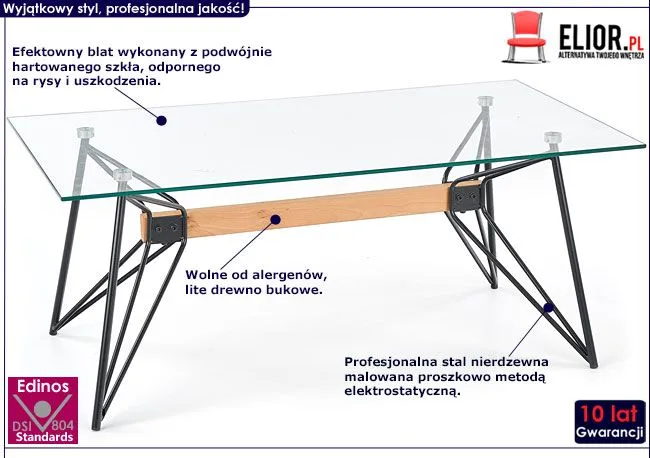 - Kolor: Blat bezbarwny, konstrukcja czarna, element ozdobny w kolorze naturalnego drewna bukowego. Kliknij w link i sprawdź także inne ławy szklane w sklepie Edinos.pl. Stwórz swój praktyczny zestaw mebli.