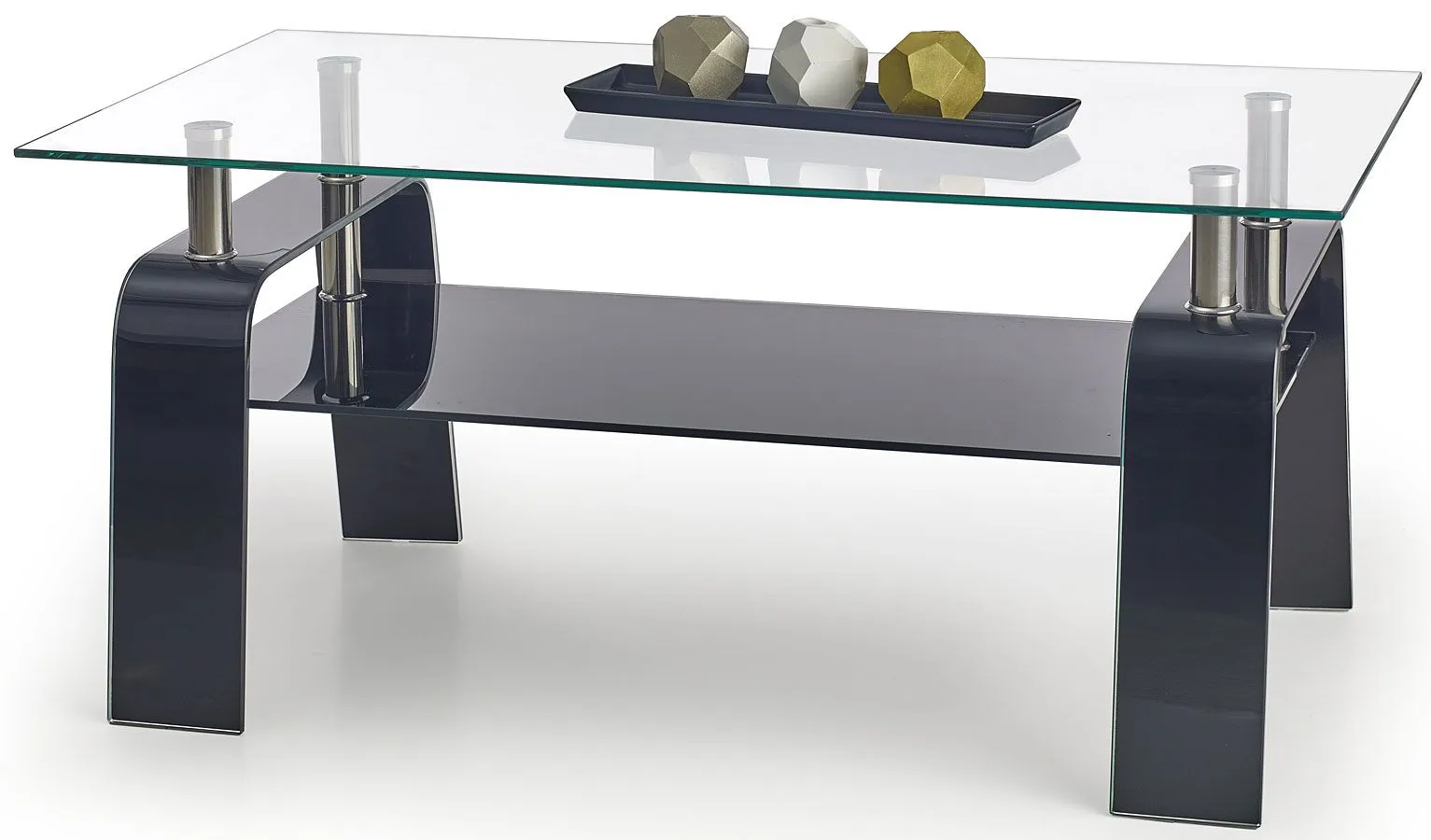 Komfortowa i efektowna ława Velvet wyróżnia się oryginalnym designem i dbałością o każdy detal mebla, a urok i nowoczesność, jak również mocna i solidna konstrukcja, dodają wiele użyteczności i wygody korzystania ze stolika. Efektowny prostokątny blat wykonany został z podwójnie hartowanego szkła o grubości 9 mm, dzięki czemu jest on w pełni odporny na rysy i uszkodzenia. Użyte do wyrobu konstrukcji mebla gięte szkło studzone w procesie kontrolowanym całkowicie zwolniono naprężeń wewnętrznych. Duża szklana półka na czasopisma czy przekąski jest niezwykle praktyczna i pozwala Ci zaoszczędzić miejsce na blacie głównym oraz utrzymać na nim porządek. Stolik dostępny jest w czterech wersjach kolorystycznych: czarnej, popielatej, dymionej oraz przezroczystej, z łatwością więc wybierzesz ten, który lepiej scharakteryzuje Twoje cztery kąty. Stonowana kolorystyka i prosta forma sprawiają, że ława Velvet doskonale sprawdza się we wnętrzach urządzonych zarówno w stylu klasycznym, jak też minimalistycznym czy nowoczesnym. Mebel marki Profeos dodaje wnętrzu harmonii i uroku, a każdy łyk kawy przy niej wypity pozwala Ci odetchnąć od codziennego zgiełku i pośpiechu. Nadaj Twojemu wnętrzu wyrazistego designu w modnym stylu ze stolikiem kawowym Velvet!