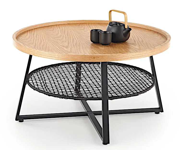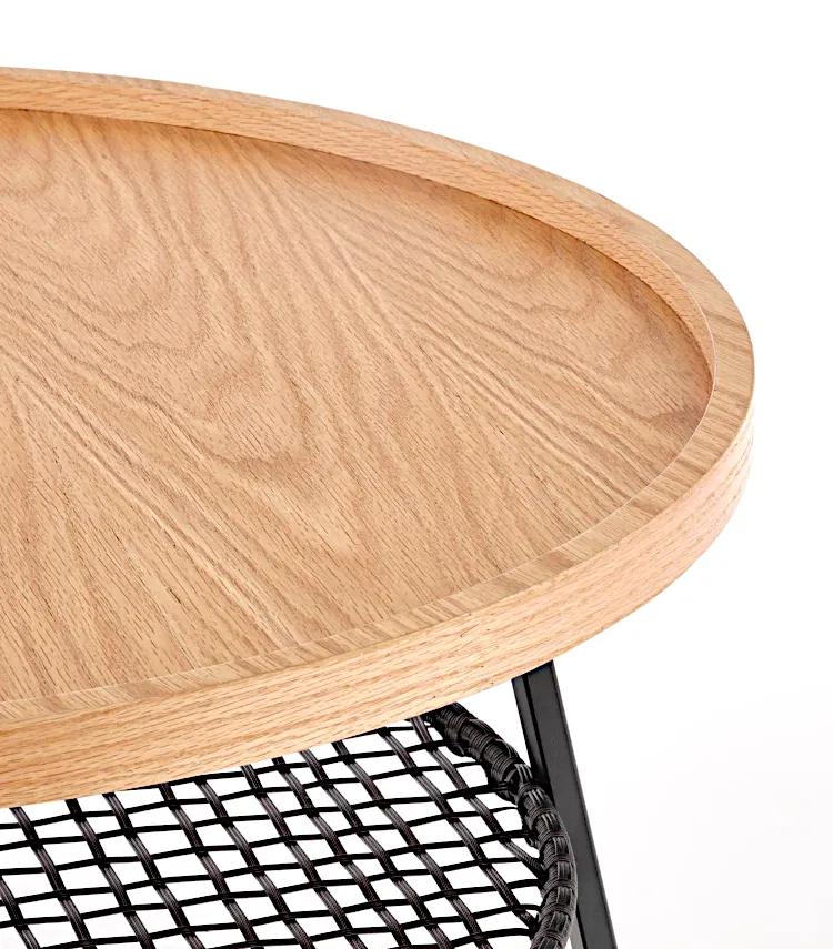 Ława Kronos marki Elior jest dumnym przedstawicielem trendu, który coraz częściej pojawia się w nowoczesnych meblach. Połączenie pełni funkcjonalności z prostotą wykonania oraz klasycznym designem. Nie od dziś wiadomo, że meble powinny być przede wszystkim praktyczne. Dlatego właśnie ława Kronos posiada blat wyposażony w listwę, która zapobiega rozlewaniu napojów. Tak proste rozwiązanie sprawia, że nie musisz już dłużej martwić się o nowy dywan. Dodatkowo duży rozmiar blatu sprawia, że zmieszczą się na nim ulubione przekąski podczas spotkań ze znajomymi. Ten niezwykły blat utrzymują solidne, stalowe nogi, które prezentują się niesamowicie. Ich szerokie ułożenie poprawia równowagę mebla, dzięki czemu ten stoi równo i nie kołysze się. Marka Elior dba o pełne wykorzystanie dostępnej przestrzeni w Twoim mieszkaniu, dlatego pod blatem stolika Kronos została umieszczona dodatkowa, pleciona półka na drobiazgi. Możesz umieścić tam ulubione czasopismo i przeczytać je podczas porannej herbaty. Na uwagę zasługuje również niezwykła paleta barw. Połączenie naturalnego dębu z czernią daje oszałamiający efekt i sprawia, że mebel wygląda modnie i ma swój niepowtarzalny charakter.