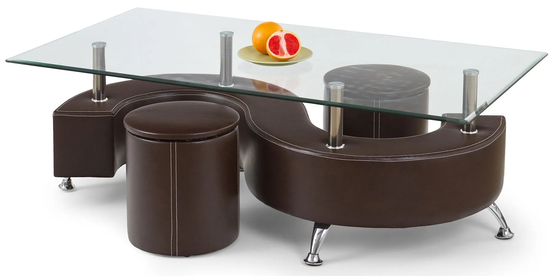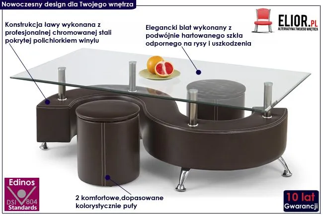 ława z pufami chromowana szklana brąz Ruten 2X