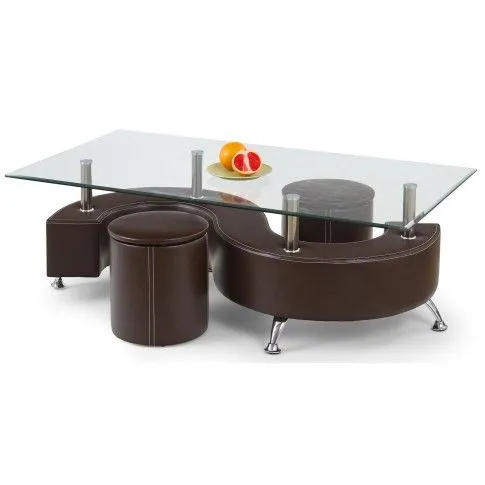 stolik kawowy z pufami ława szklana Reza