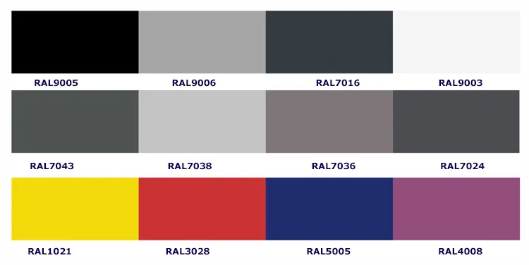 - 12 modnych kolorów konstrukcji stalowej. Poinformuj nas o wybranym kolorze wpisując numer RAL w polu "Komentarz do zamówienia" lub drogą mailową.