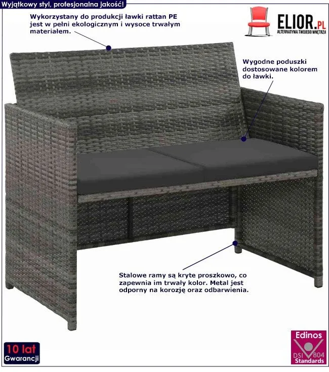 - Kolor: szary. Kliknij w link sprawdź także inne ławki ogrodowe w sklepie Edinos.pl. Stwórz swój praktyczny zestaw mebli.