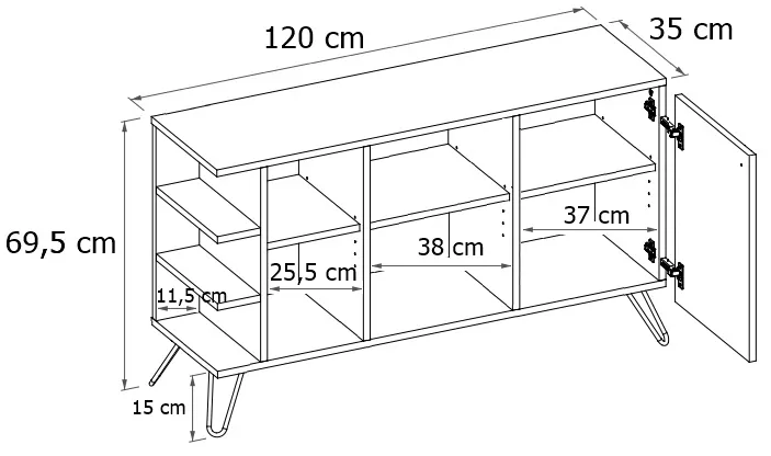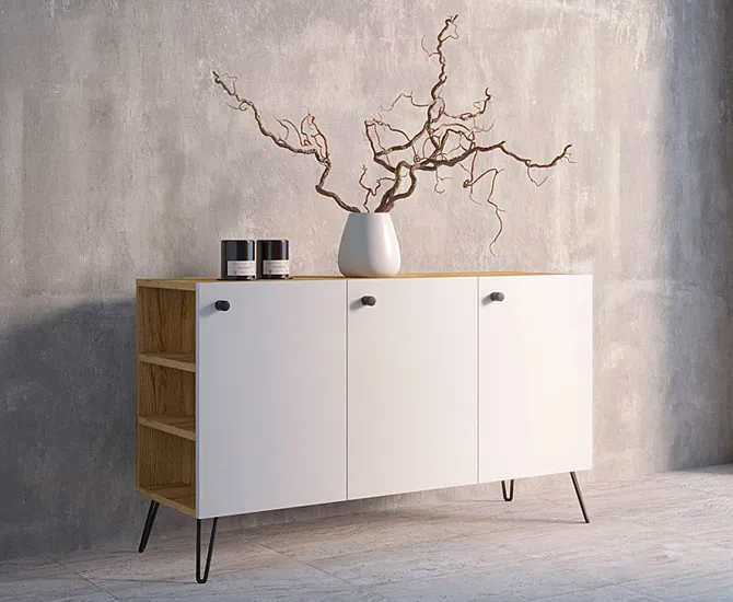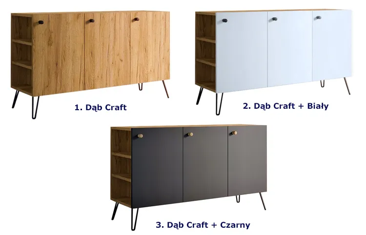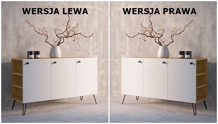 Dotyczy: Komoda z nóżkami typu hairpin legs lewostronna dąb craft + czarny - Zorina 7X