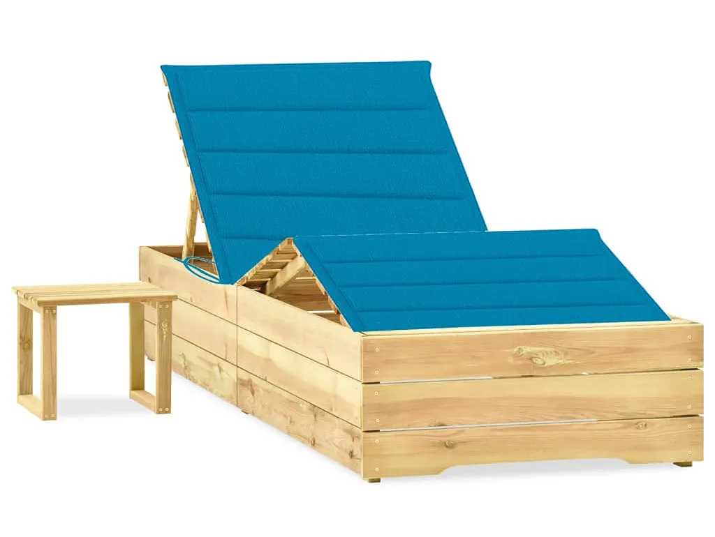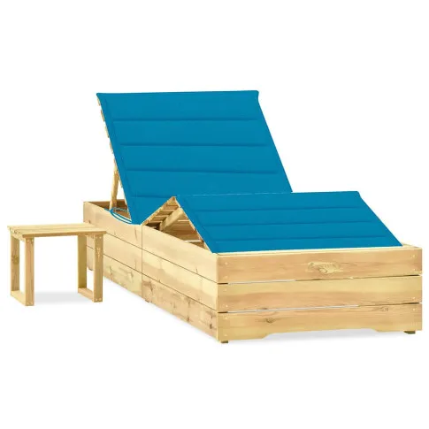 Leżak z niebieską poduszką i stolikiem do ogrodu - Ogebis