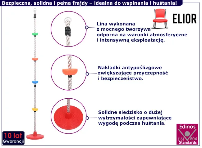 Wyobraź sobie, jak Twoje dziecko rozwija swoje umiejętności wspinaczkowe, równocześnie świetnie się bawiąc! Warsa marki Edinos Premium to linka wspinaczkowa, która łączy aktywną zabawę z rozwojem sprawności fizycznej. Dzięki niej maluchy mogą ćwiczyć koordynację ruchową, siłę i równowagę w najbardziej naturalny sposób – przez beztroską zabawę na świeżym powietrzu. Wystarczy zawiesić ją na drzewie lub placu zabaw i gotowe! Warsa to gwarancja godzin radości i aktywności na podwórku.