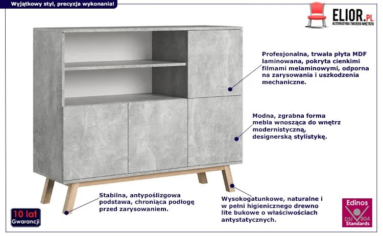 - Modna kolorystyka: beton, buk. Kliknij w link i sprawdź także inne komody szare w sklepie Edinos.pl. Stwórz swój praktyczny zestaw mebli.