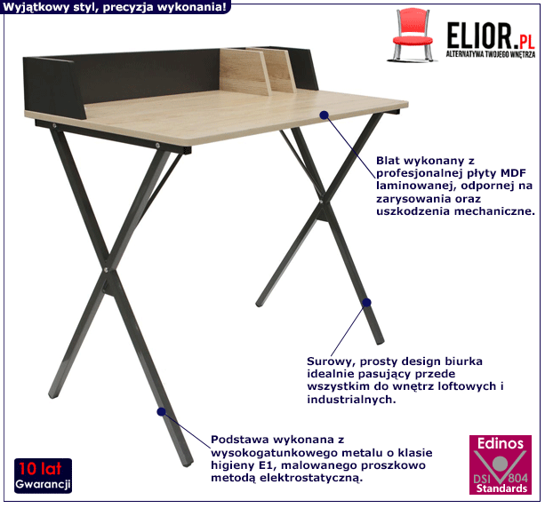 - Modna kolorystyka: czarne, odcień drewna. Kliknij w link i sprawdź także inne inne biurka industrialne w sklepie Edinos.pl. Stwórz swój praktyczny zestaw mebli.