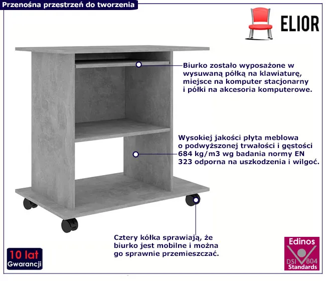 Dotyczy: Mobilne biurko na kółkach z półkami dąb sonoma - Fortis