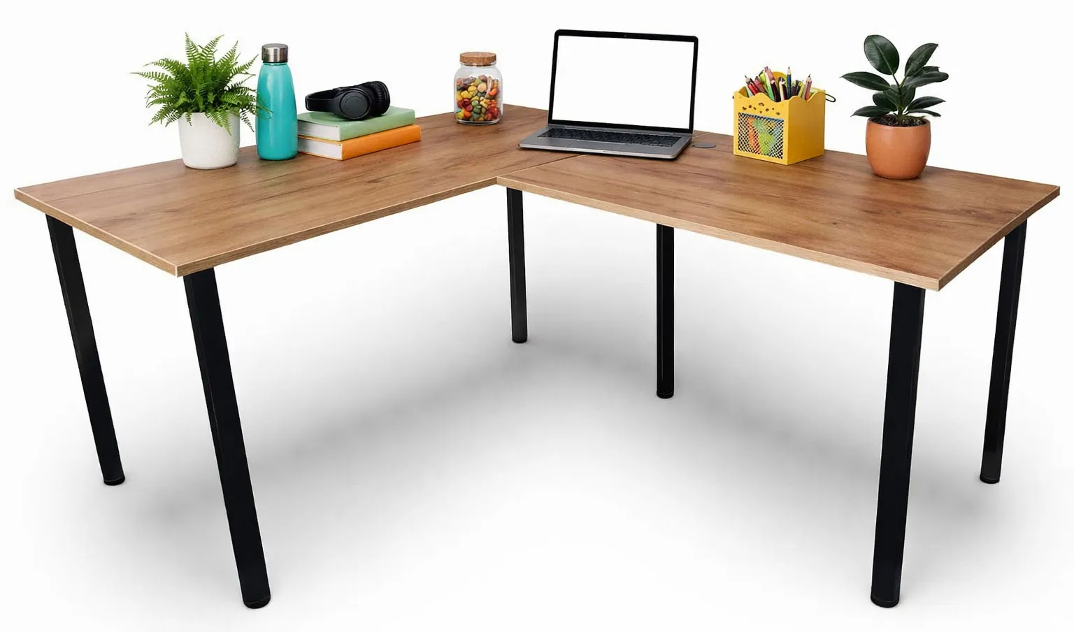 Dotyczy: Narożne biurko z regulacją 150x90x60 dąb craft złoty - Salvada