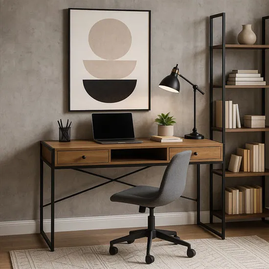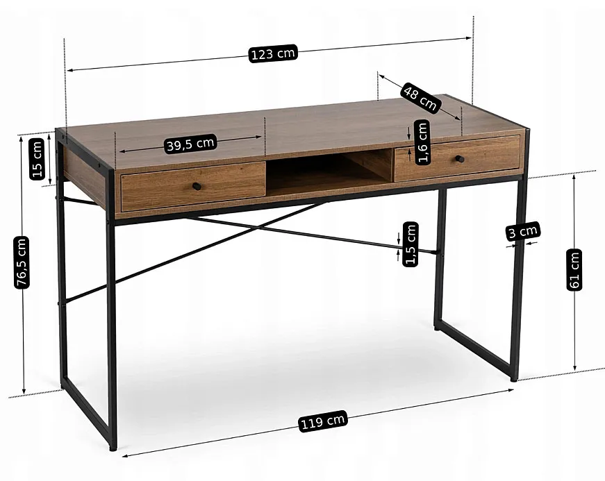 Dotyczy: Loftowe duże biurko do pracy z szufladami dąb złoty + czarny - Takira