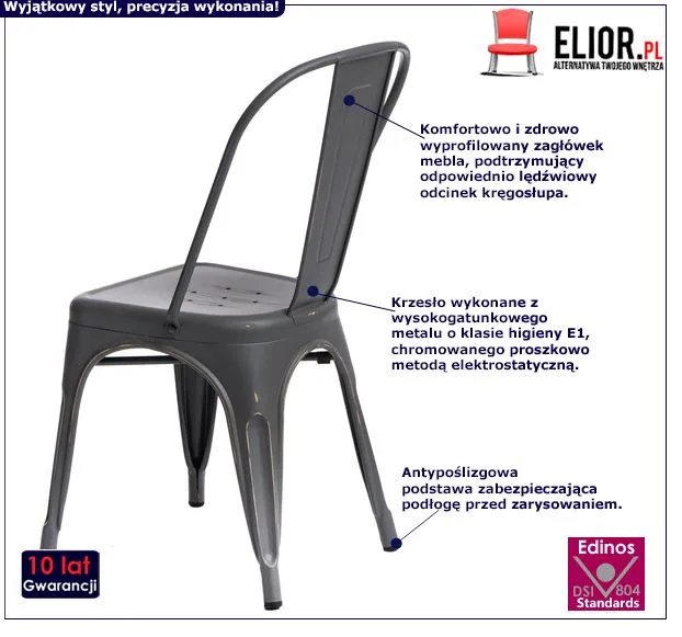 - Modna kolorystyka: szare. Kliknij w link i sprawdź także inne krzesła loftowe w sklepie Edinos.pl. Stwórz swój praktyczny zestaw mebli.