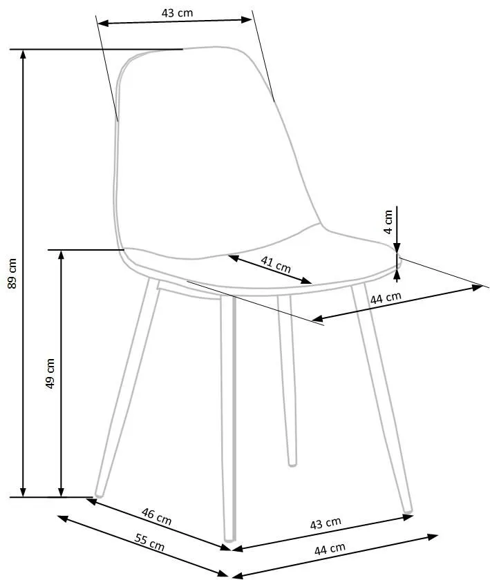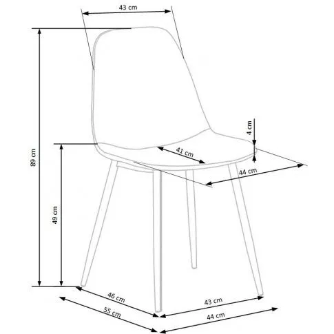 • Wymiary: szerokość mebla: 44 cm, szerokość siedziska: 44 cm,  głębokość mebla: 55 cm, głębokość siedziska: 41 cm, wysokość całkowita: 89 cm, wysokość siedziska: 49 cm.