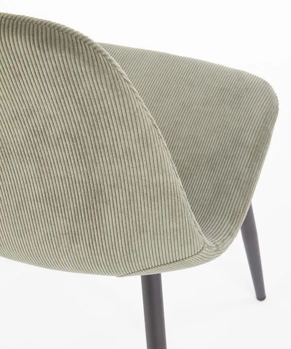 • Materiał: tapicerka - wysokiej jakości miękki sztruks odporny na ścieranie na poziomie 100 tysięcy cykli; nogi - profesjonalna stal nierdzewna malowana proszkowo metodą elektrostatyczną.