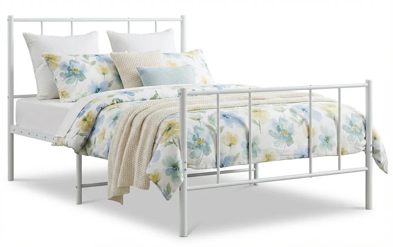 • Kolor: Biały. W naszej ofercie posiadamy także inne łóżka metalowe.  Kliknij i stwórz swój wyjątkowy zestaw mebli.