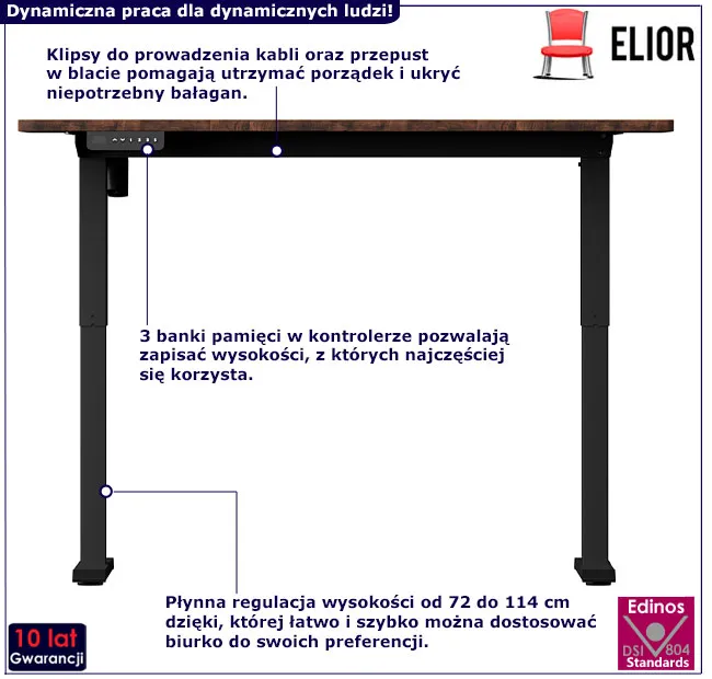 Dotyczy: Elektryczne czarne biurko regulowane do pracy na stojąco 140x60 cm - Klever 3X