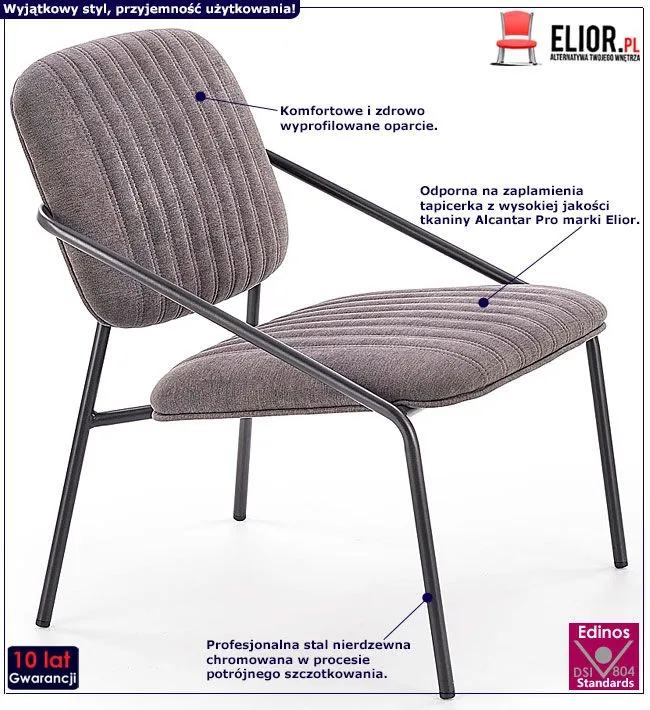 - Kolor: Tapicerka popielata, konstrukcja czarna. Kliknij w link i sprawdź także inne szare fotele w sklepie Edinos.pl. Stwórz swój praktyczny zestaw mebli.