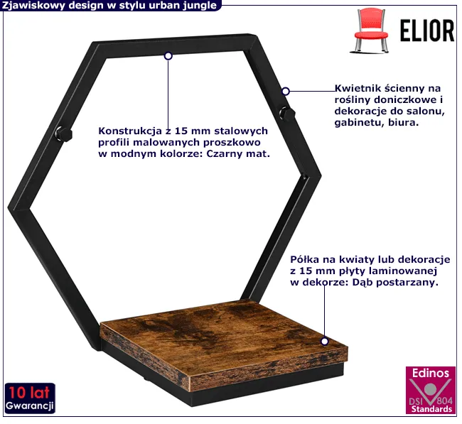 • Modny kolor: Dąb postarzany + czarny mat. Szukasz innego stojaka na kwiaty? Sprawdź kwietniki w sklepie Edinos.pl. Stwórz swój praktyczny zestaw mebli.