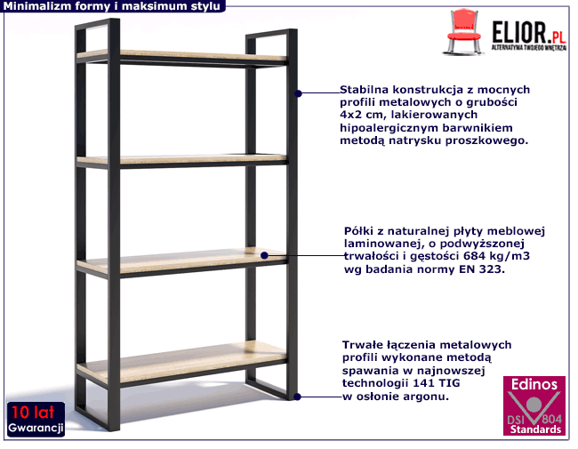 • Kolor: Dąb Brunico. Szukasz innego regału w stylu industrialnym? Kliknij w link i sprawdź regały metalowe w sklepie Edinos.pl. Zamawiając produkty razem, oszczędzasz na wspólnej wysyłce.