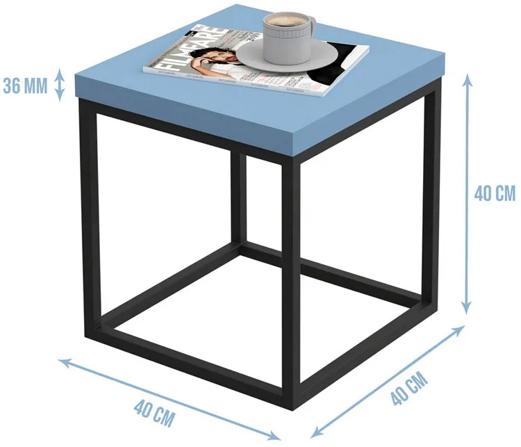 • Wymiary: szerokość: 40 cm, wysokość 43,6 cm, głębokość: 40 cm, grubość płyty: 36 mm, profil nóg 2x2 cm.